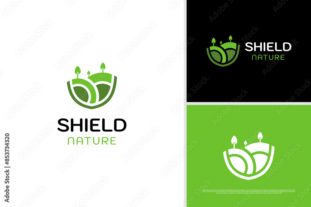 Fotografie Vector shield nature landscape logo design template