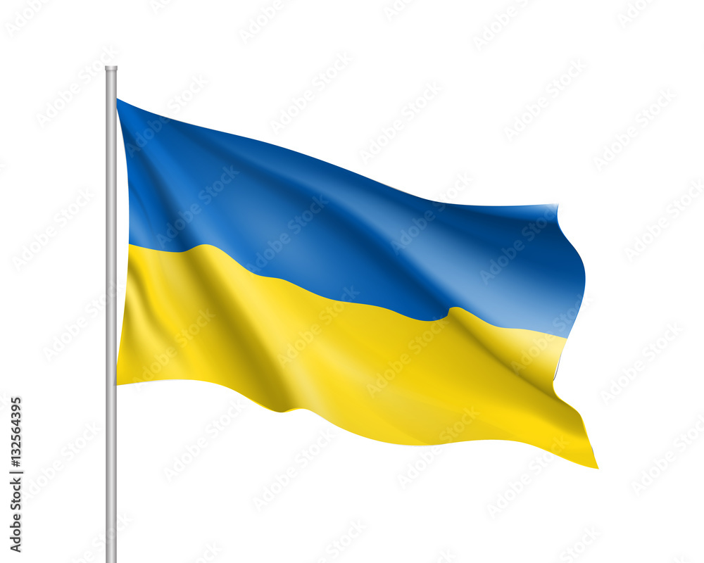 Obraz na plátně Vector template of Ukraine flag on metallic pole