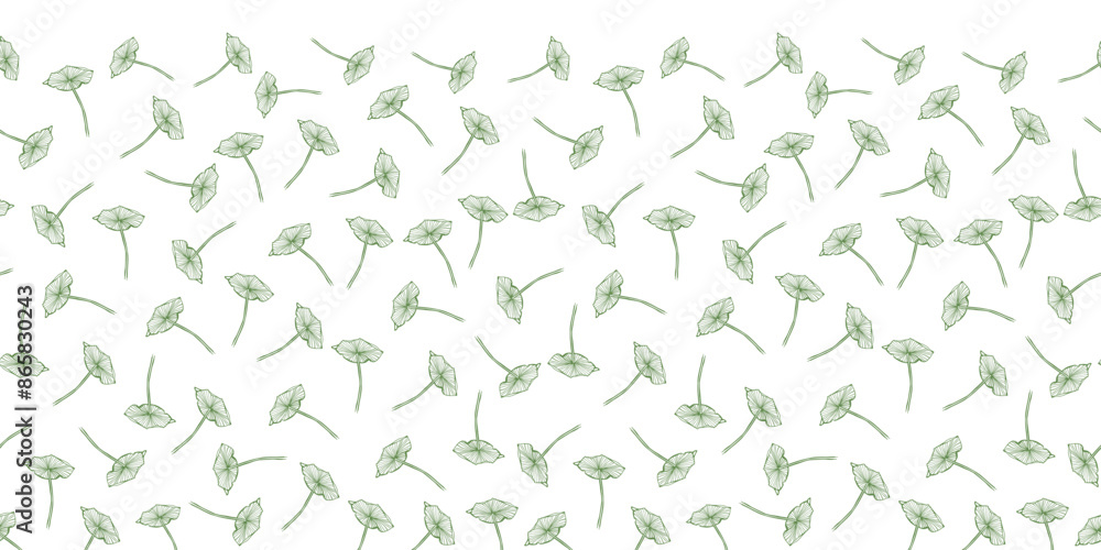 Obraz na plátně Vector white delicate horizontal border pattern with scattered lotus leaf and stem 05