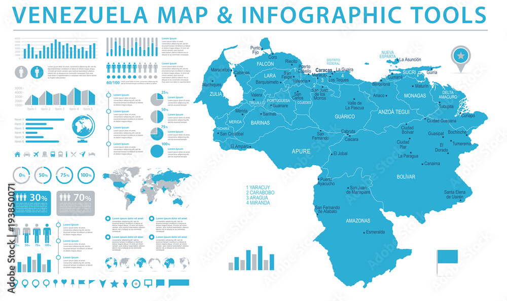 Obraz na plátně Venezuela Map - Info Graphic Vector Illustration