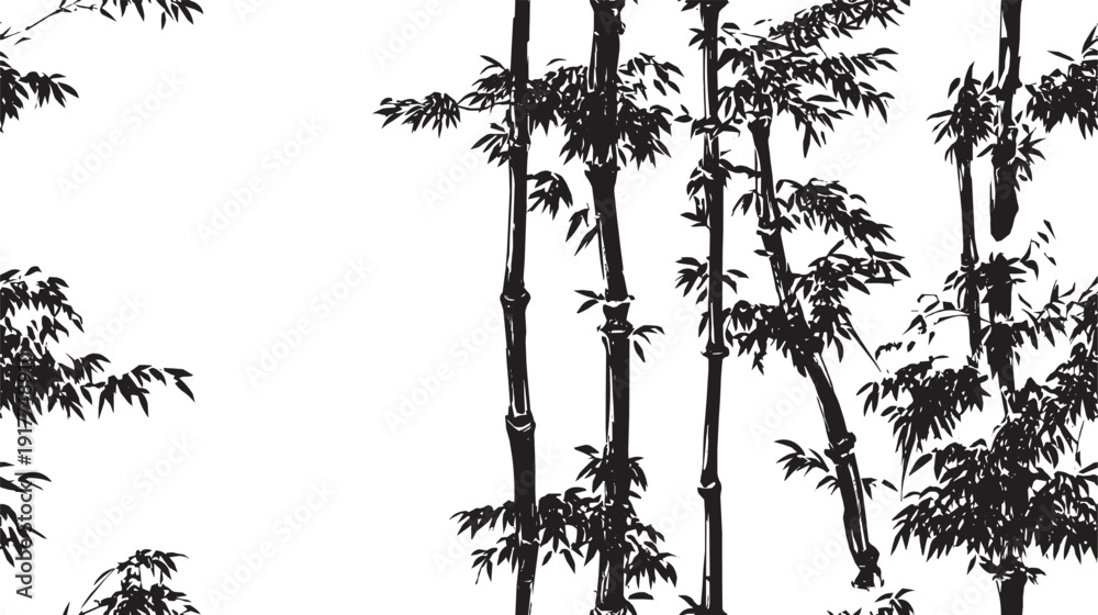 Fotografie Vertical bamboo stems and leaves, hand-drawn aesthetic, pattern texture vector i