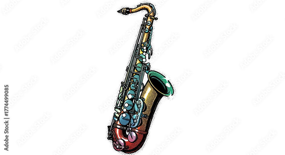 Fotografie Vibrant artistic illustration of a classic saxophone instrument.