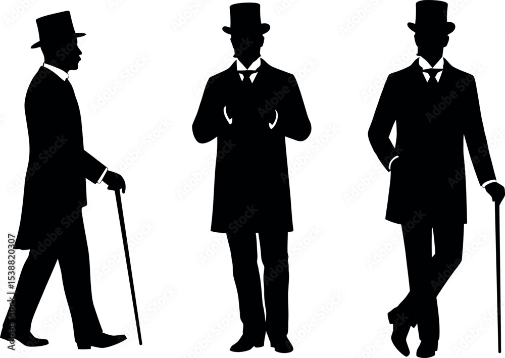 Fotografie Victorian Gentleman Silhouettes: Top Hat & Cane