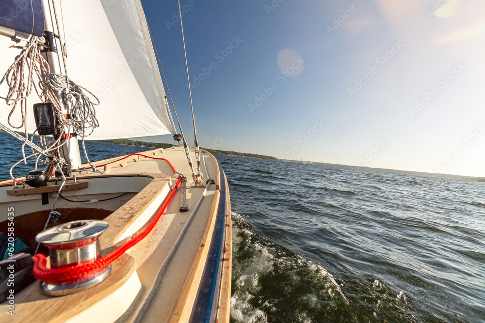 Obraz na plátně View from a sailing boat sailing on choppy sea on a beautiful summer day