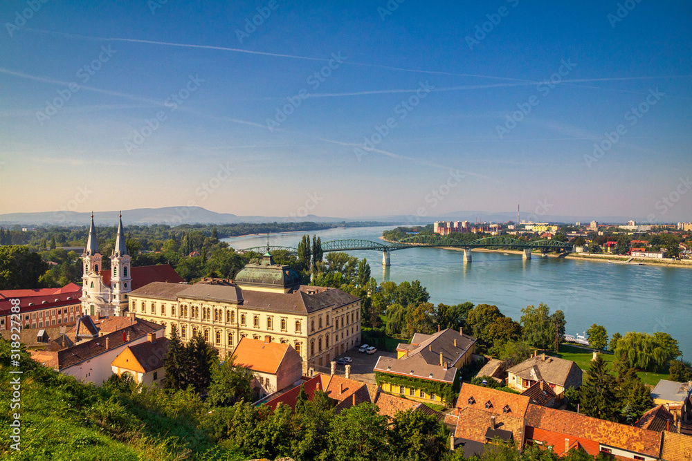 Fotografie View of the historic town from the Esztergom basilica in Hungary