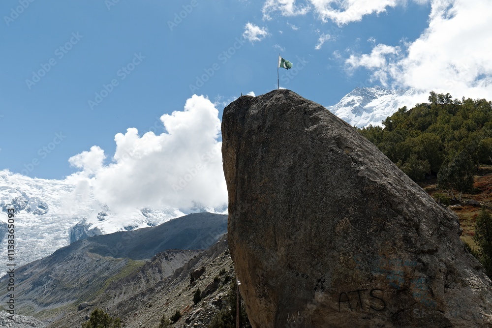 Fotografie View of the Nanga Parbat mountain massif, North peak 7,816 meters high from Behal village