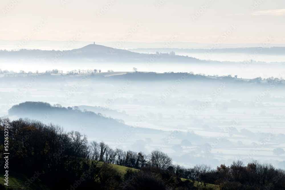 Fotografie View through the clouds to Glastonbury Tor from Draycott Sleights