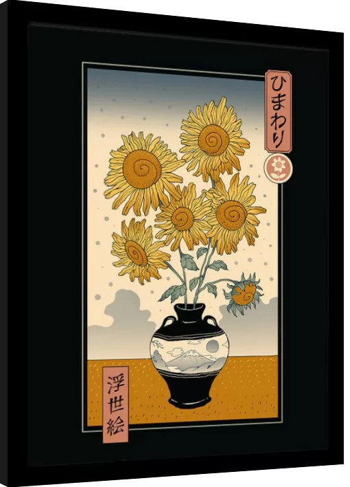 Zarámovaný plakát Vincent Trinidad - Sunflowers Ukiyoe