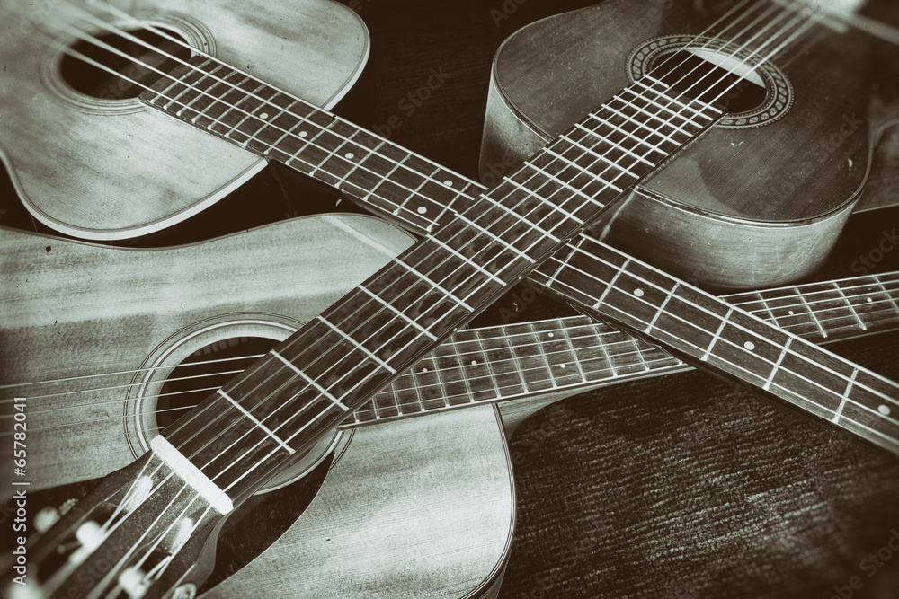 Obraz na plátně Vintage Acoustic Guitars Crossed