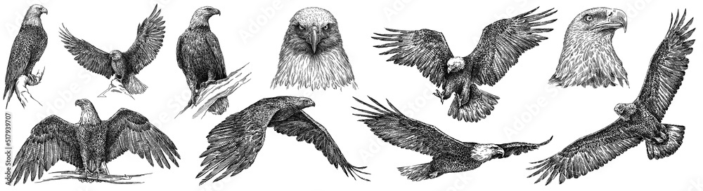 Obraz na plátně Vintage engrave isolated eagle set illustration ink sketch