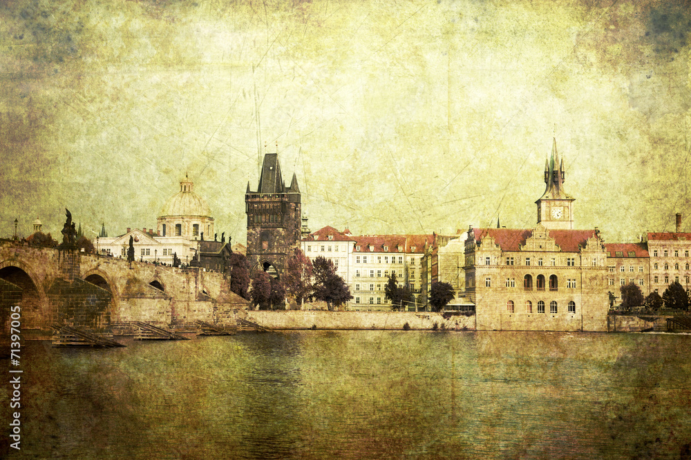 Fotografie Vintage style panorama of old Prague, Czech Republic