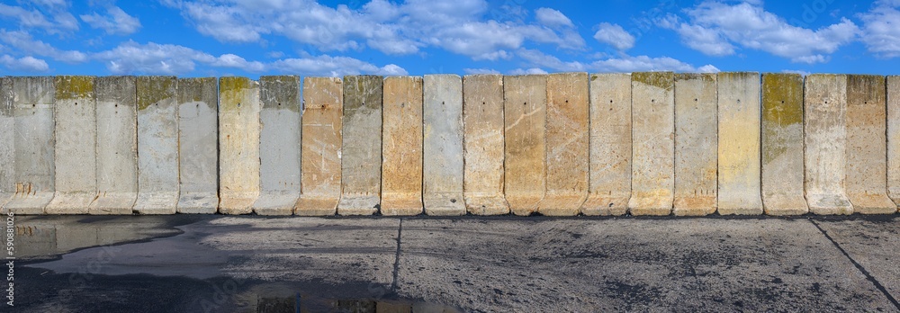 Fotografie wall of concrete pylons nice blue sky and clouds