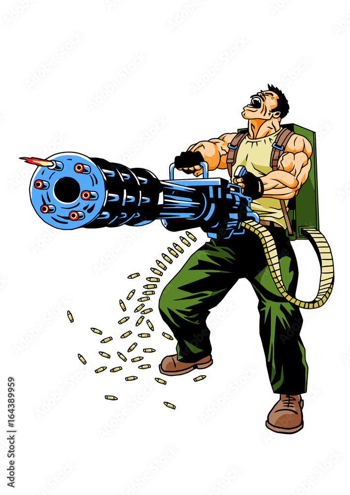 Fotografie war soldier with a machine gun,illustration,logo,color