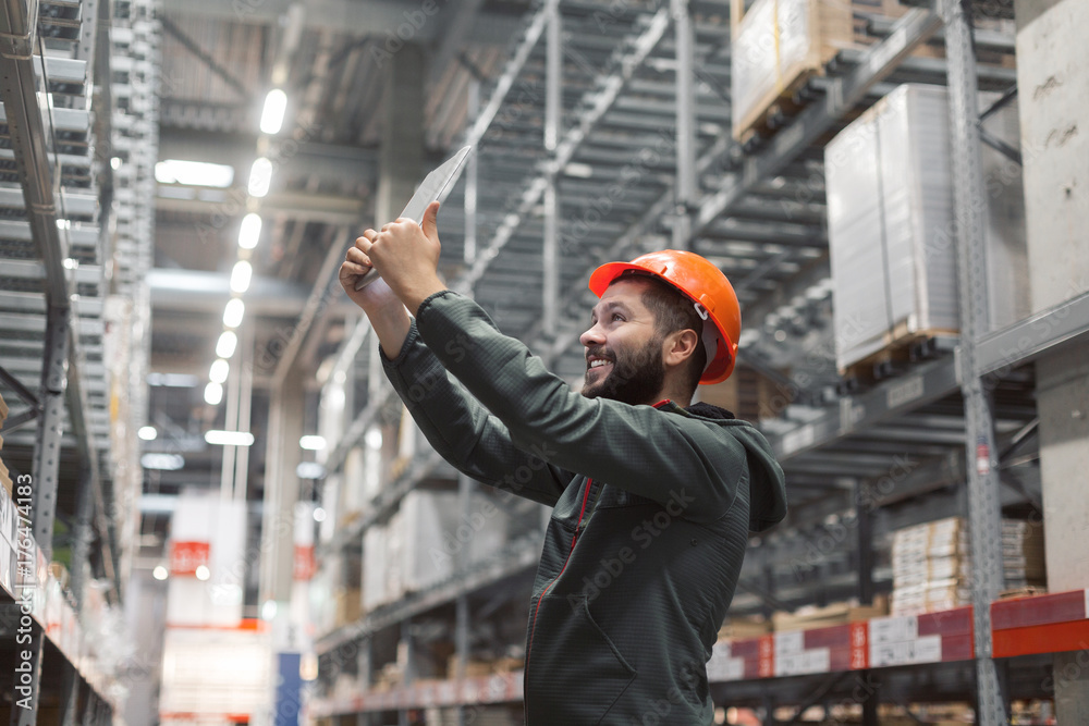 Fotografie Warehouse manager checking his inventory in a large warehouse