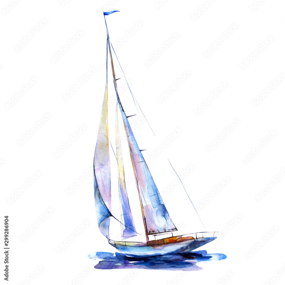 Fotografie Watercolor illustration, hand drawn painted sailboat isolated object on white background