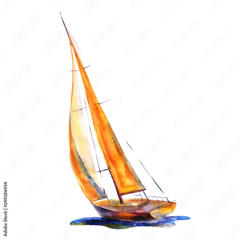 Fotografie Watercolor illustration, hand drawn painted sailboat isolated object on white background