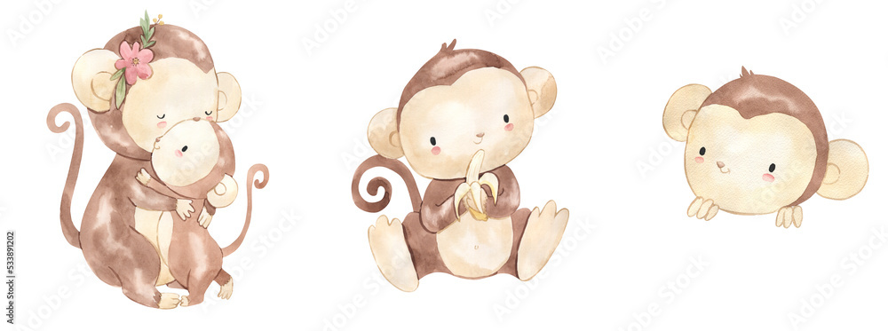 Fotografie Watercolor monkey illustration for kids