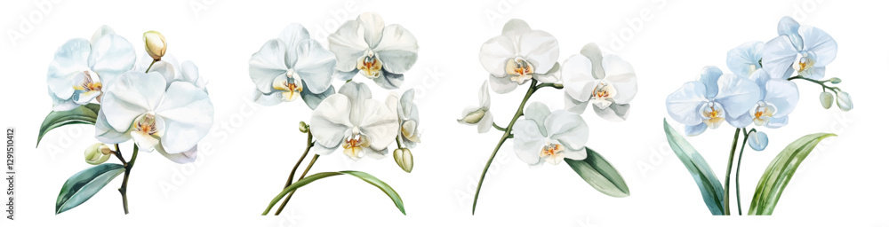 Fotografie Watercolor set of white orchids