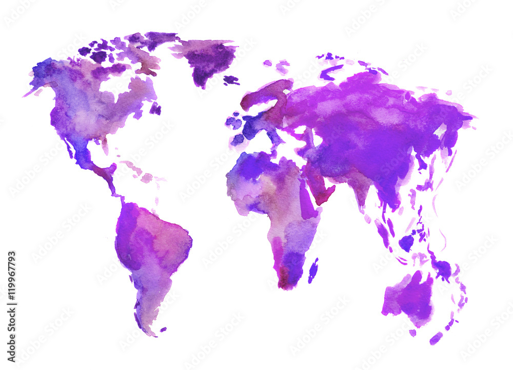 Obraz na plátně Watercolor world map