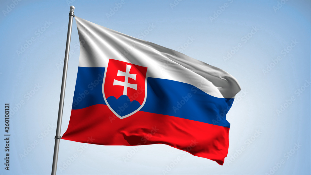 Fotografie Waving the flag of Slovakia on the flagpole