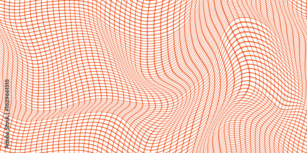 Fotografie Wavy distorted orange construction site fence on white bg as a seamless pattern