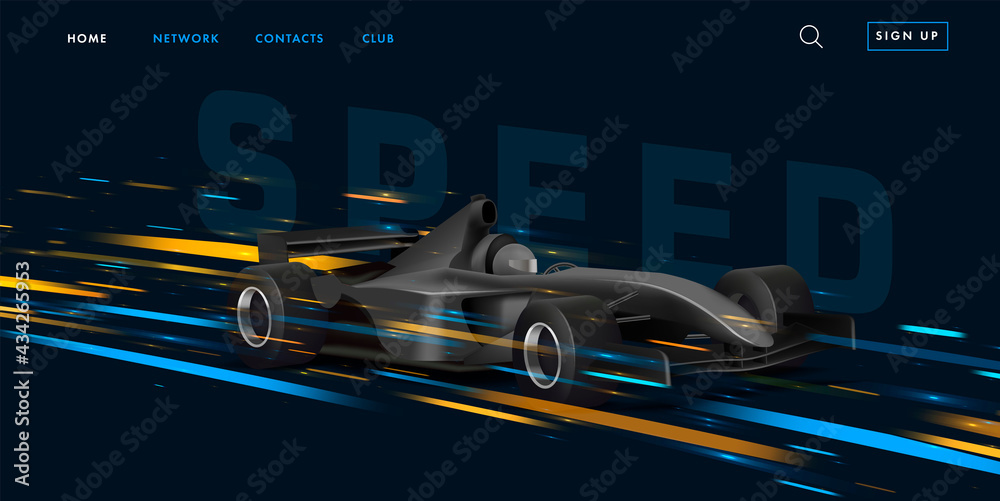Fotografie Web banner with super car sport bolide, black auto in movement with bright speed