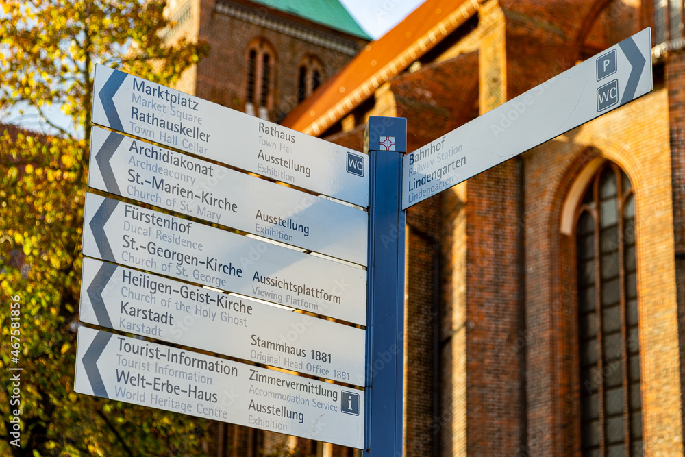 Obraz na plátně Wegweiser Wismar Tourismus