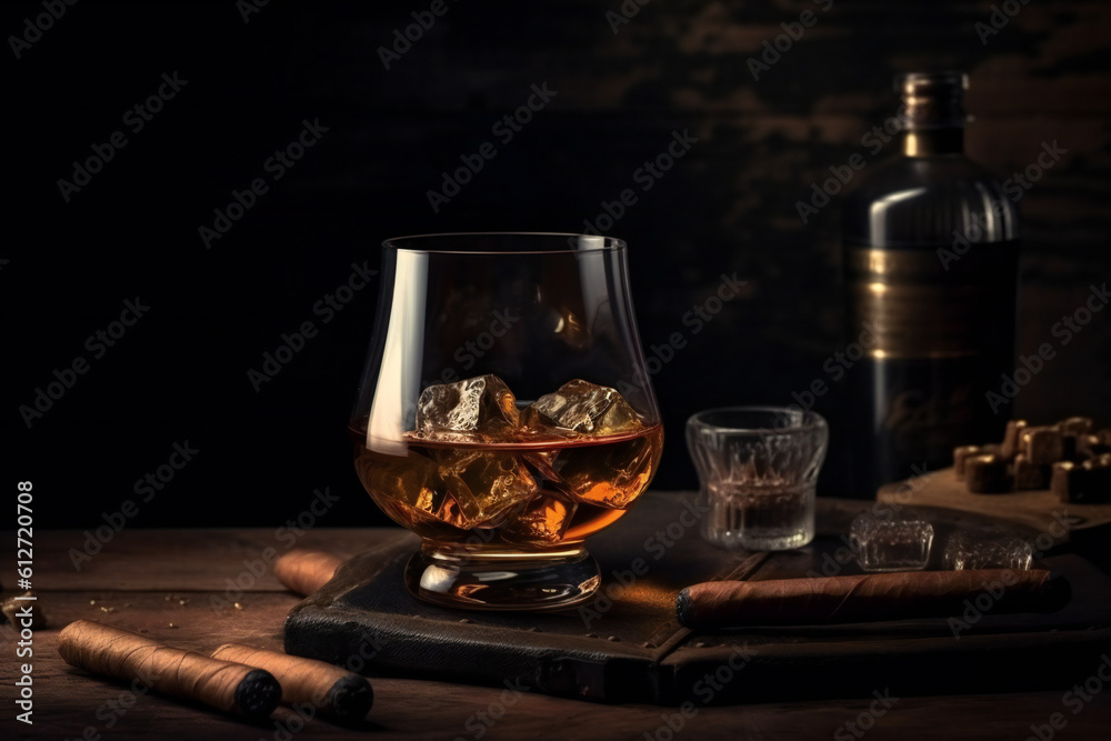 Obraz na plátně Whiskey with ice and cigar