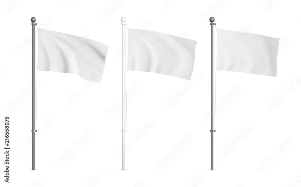 Fotografie White and metallic wawing flag mockup set