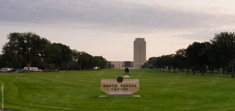 Obraz na plátně Wide Panoramic North Dakota Capital Building Bismarck