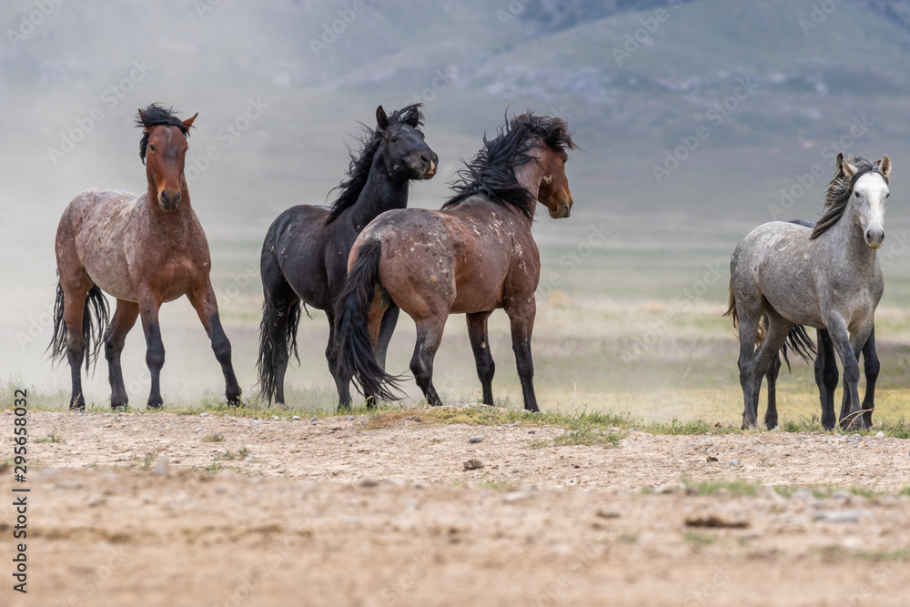 Obraz na plátně Wild Horses in Spring in the Utah Desert