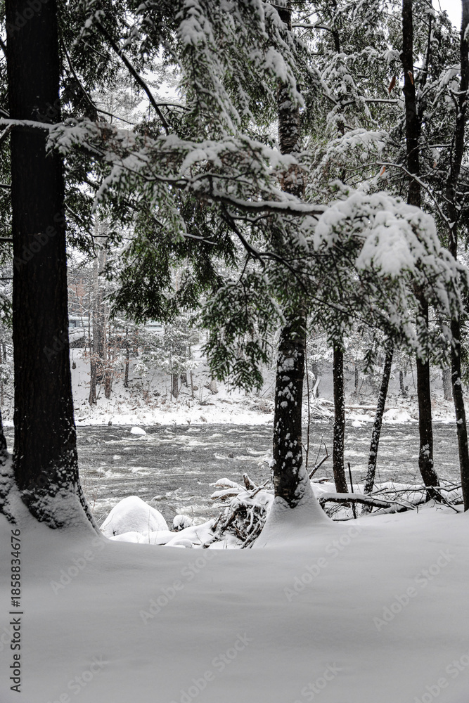 Fotografie Winter riverscape in park Quebec Canada
