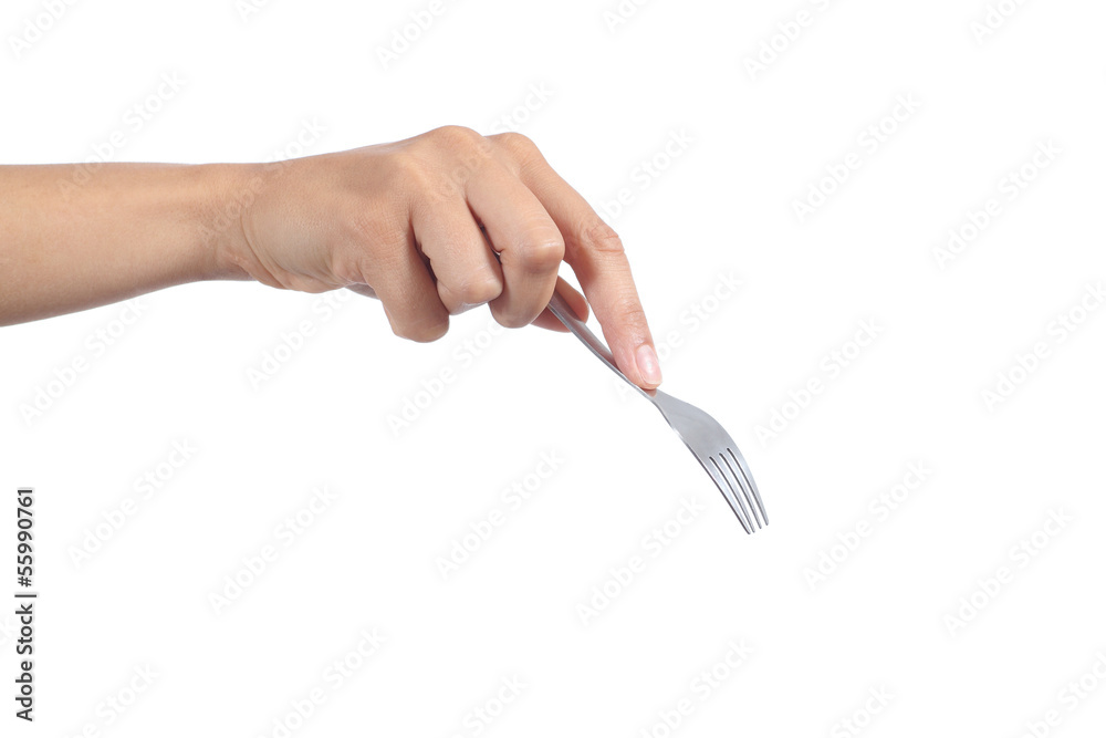 Obraz na plátně Woman hand using a dessert fork