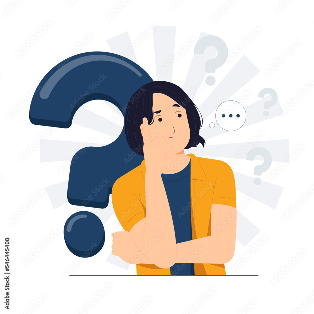 Fotografie Woman with thoughtful focused expression thinking, questioned, curiosity, and fe