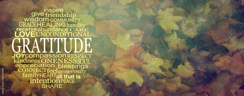 Fotografie Words of Gratitude at Thanksgiving Circular Message Banner - an autumnal multic