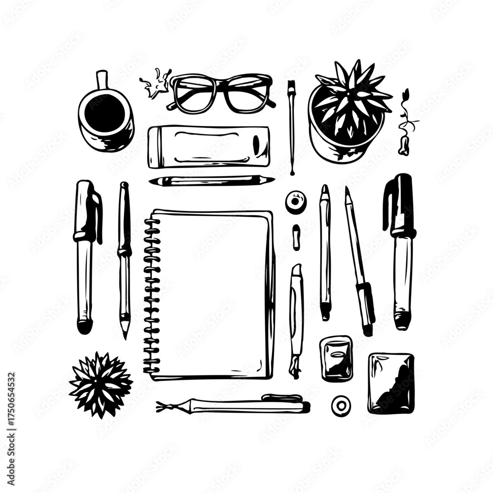Fotografie Workspace arrangement showcasing artistic objects and implements for creative ac