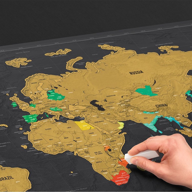 Mám zájem o produktScratch Map Deluxe XL je velkým bratrem slavné Scratch Map Deluxe. Tato obrovská světová mapa potažená stíratelnou fólií je ideálním doplňkem nad pohovku či psací stůl. Deluxe XL je rozvinutější a obsahuje mnohem větší geografické a demografické detaily. Pod stíratelnou vrstvou se ukrývají zářivé barvy, které budete postupně odkrývat, jak budete navštěvovat daná místa. Detaily jsou důležité. Scratch Map Deluxe XL vám poskytne složité detaily jako jsou kontury země a moře a vytvoří krásný osobní záznam vašich cest.