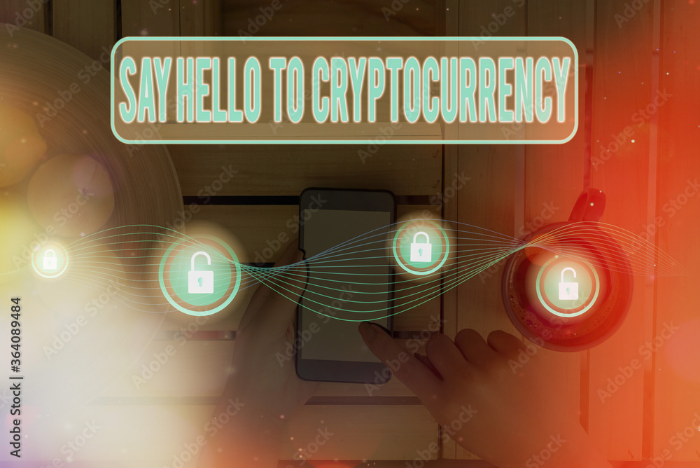 Fotografie Writing note showing Say Hello To Cryptocurrency