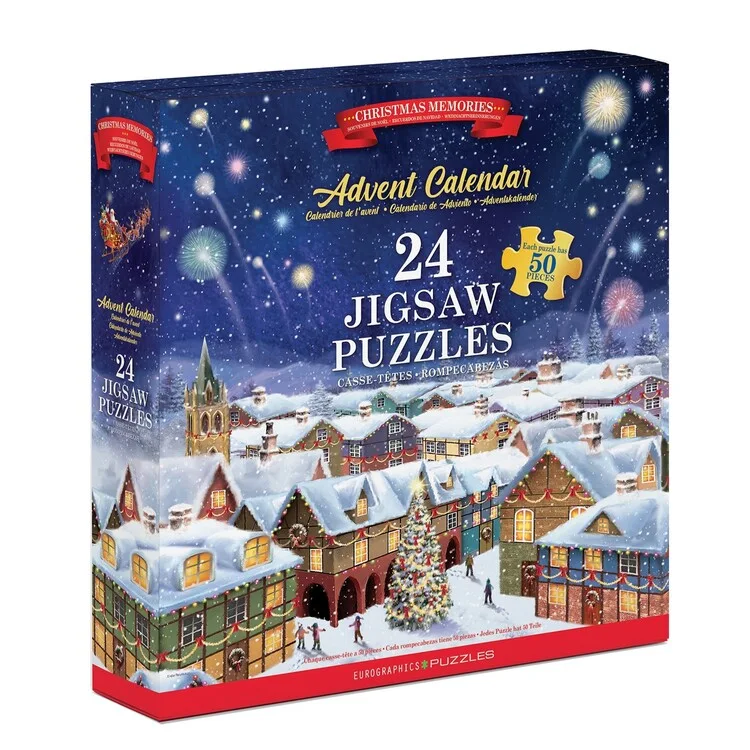 Nostalgické svátky: ohňostroje, světýlka, zasněžené ulice a hřejivé vzpomínky. Adventní rituál, který navodí sváteční klid a pohodu. V kalendáři je 24 mini puzzlů s laskavými zimními scénami. 24 dní, 24 mini puzzlů, 50 přesně vyřezaných dílků pro každý den. Obrázky přibývají den po dni a zkracují čekání na Štědrý den. Ilustrátor: Simon Treadwell.