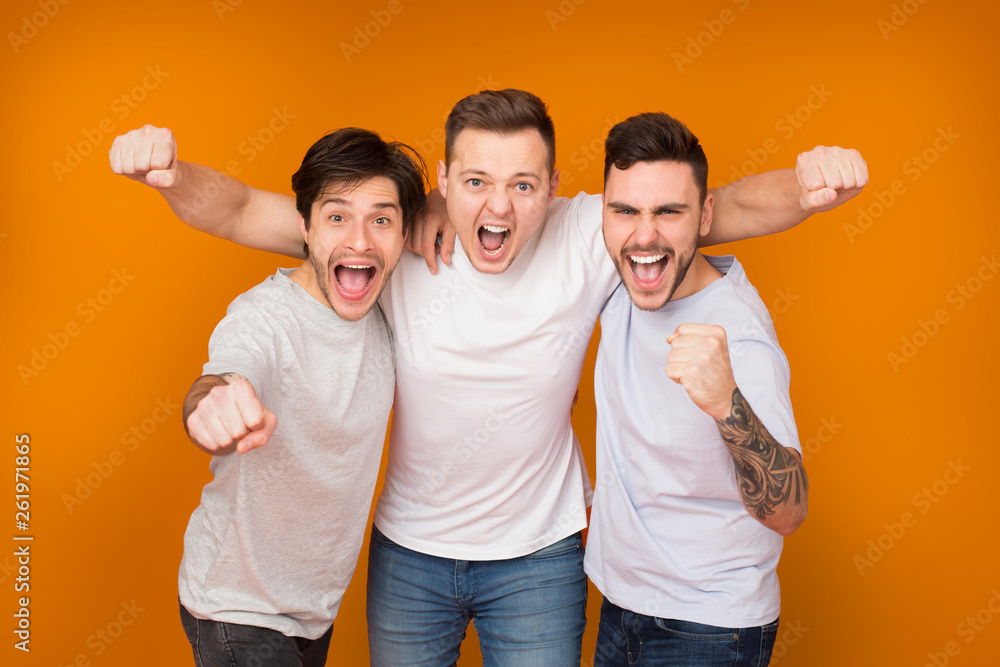 Fotografie Yes. Cheerful men shouting and celebrating victory