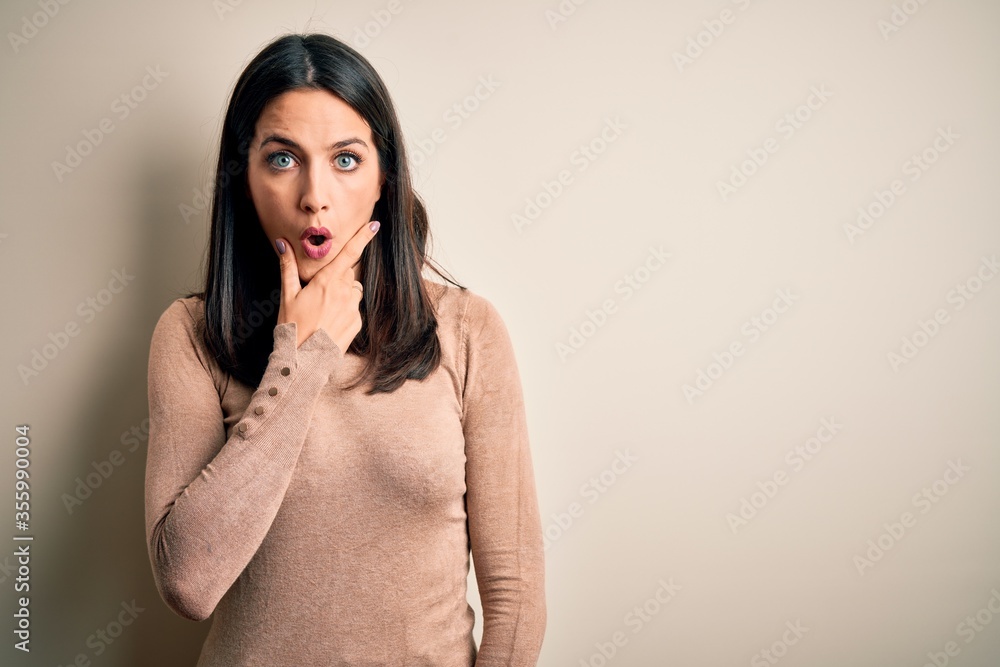 Fotografie Young brunette woman with blue eyes wearing casual sweater over isolated white b