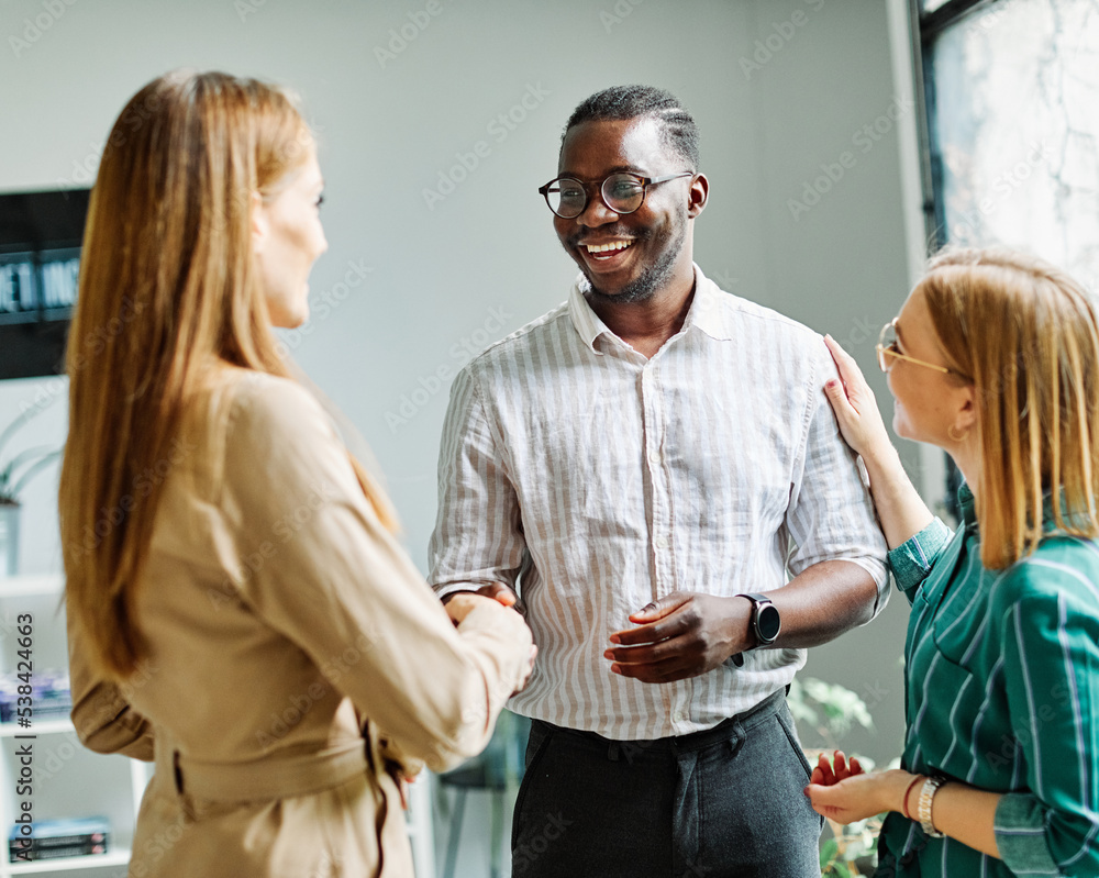 Fotografie young business people meeting office handshake hand shake shaking hands teamwork