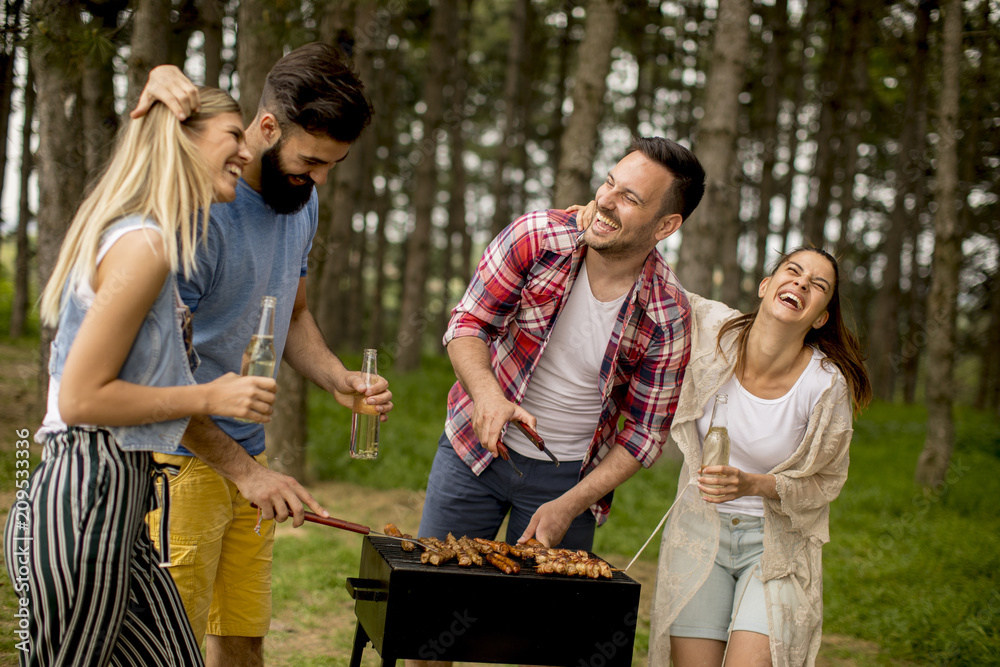Obraz na plátně Young people enjoying barbecue party in the nature