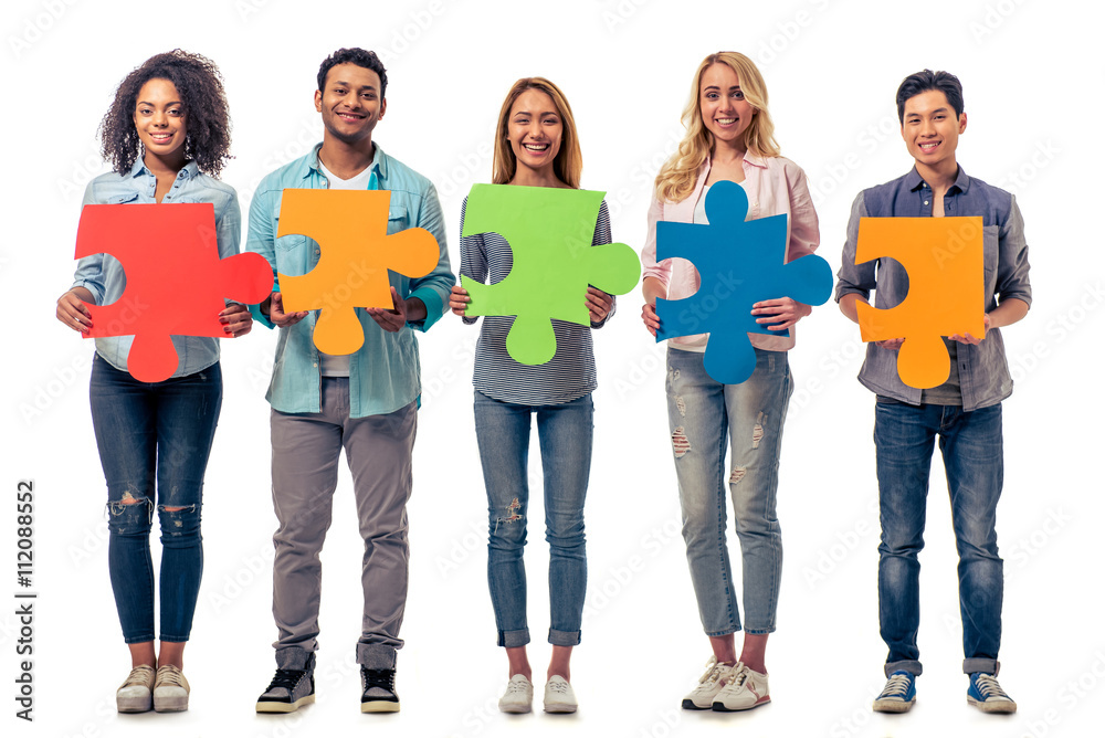 Fotografie Young people with puzzles