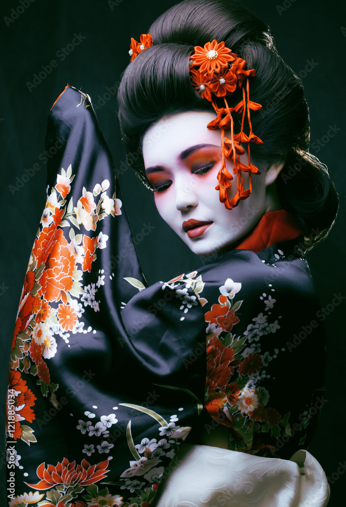 Fotografie young pretty geisha in kimono