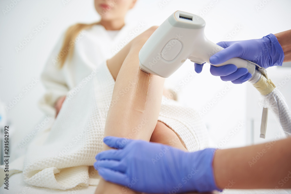 Obraz na plátně Young woman receiving laser epilation in modern beauty salon