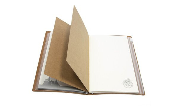 Luxusní kožený zápisník. Ideální parťák na cesty. Vyrobeno z umělé kůže. Zápisník obsahuje: 40 linkovaných stránek, 40 tečkovaných stránek, 3 kapsy na karty, 1 větší kapsa na drobnosti či poznámky.