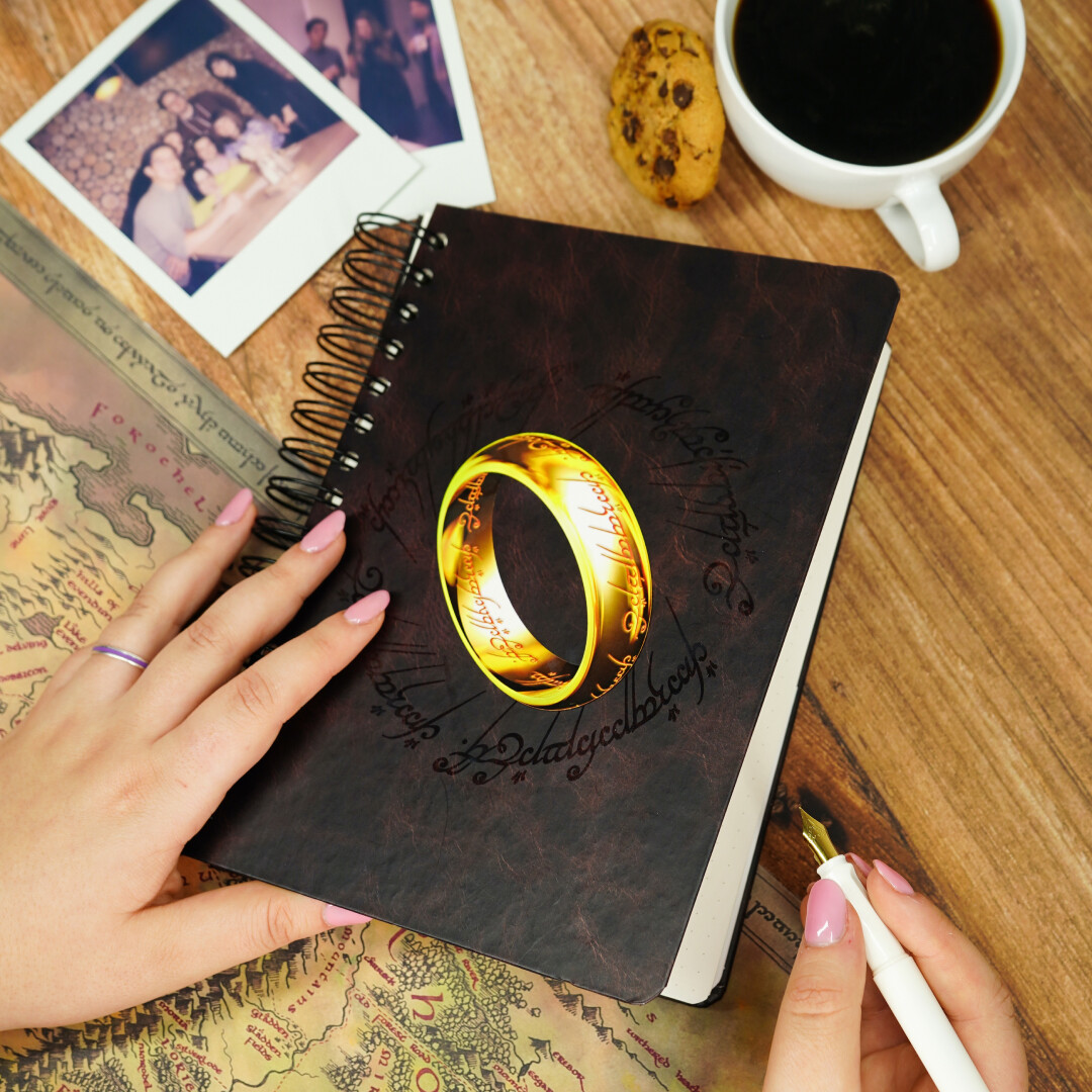 Zahajte svou vlastní epickou cestu s Pánem Prstenů zápisníkem! Tato magická kniha s kroužkovou vazbou a tečkovanými stránkami nabízí 180 stran, na které můžete zaznamenat své myšlenky, dojmy a dobrodružství. Staňte se pravým společníkem hrdinů Středozemě a dejte svým příběhům prostor k oživení. Perfektní dárek pro všechny fanoušky J.R.R. Tolkiena.