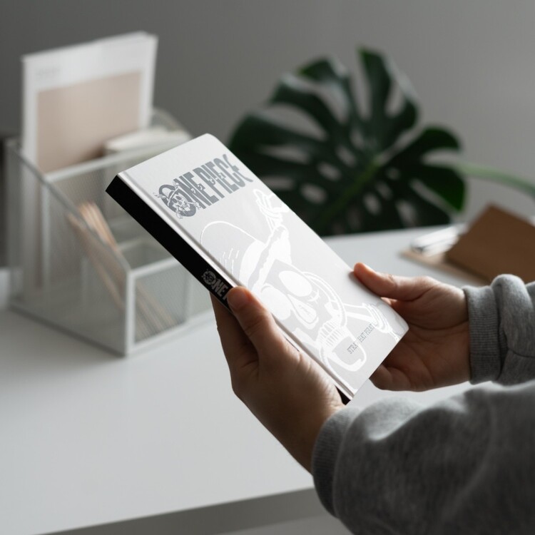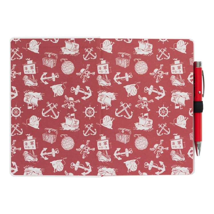 Stylový poznámkový blok ve stylu lodního deníku s tvrdými deskami se sametově matným povrchem, zaoblenými rohy a lepenou vazbou, doplněný záložkovou stuhou a vnitřní kapsou. Součástí je projektorové pero, které po stisknutí tlačítka promítá obrázek; napájení 4× 1,5 V AG3, baterie v balení.