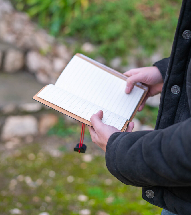 Luxusní kožený zápisník. Ideální parťák na cesty. Vyrobeno z umělé kůže. Zápisník obsahuje: 72 linkovaných stránek, 72 tečkovaných stránek, 3 kapsy na karty, 1 větší kapsa na drobnosti či poznámky